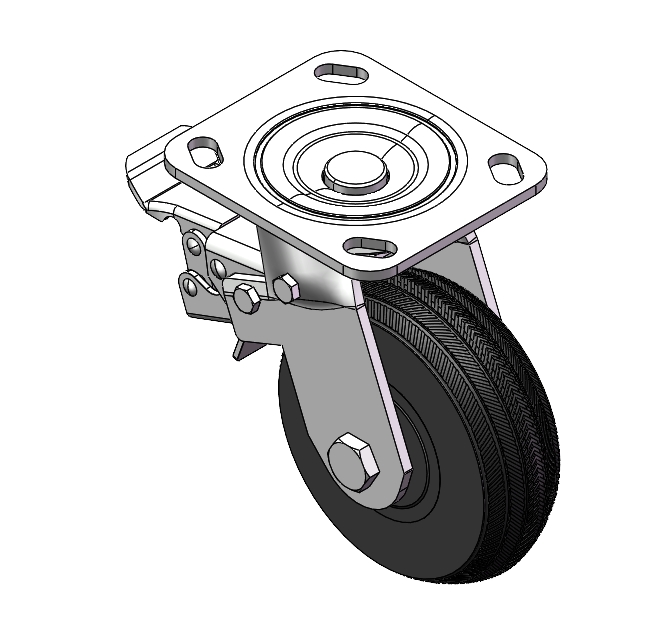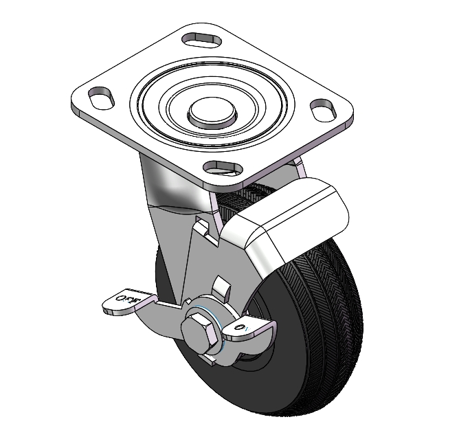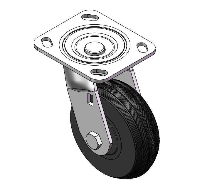 Swivel Caster with Riveted Fork and Stamping Fork with D-shaped hole. Zine-Plated, Top Plate (4.5T) Mounting Type system. Cast Iron Wheel Center with High-Quality Resilient Rubber tread. Iron black, Bearing with Ball Bearing. |