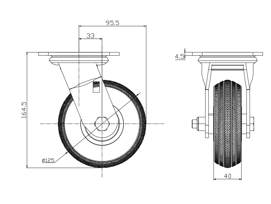 SX Rubber Wheel Diameter × Wheel Width 125 x 40mm |