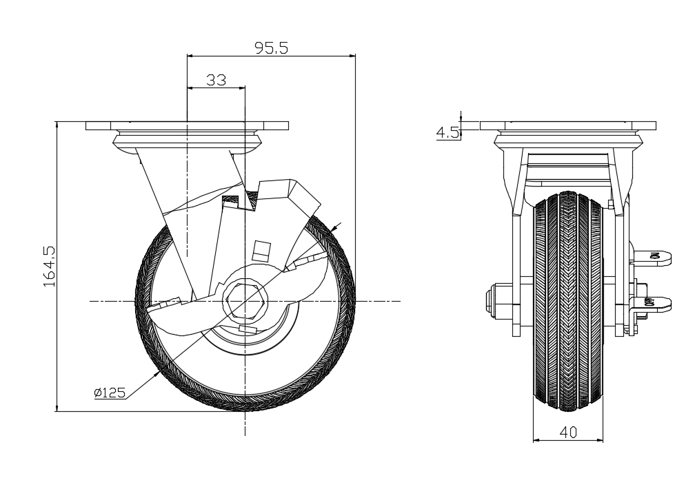 SX Rubber Wheel Diameter × Wheel Width 125 x 40mm |