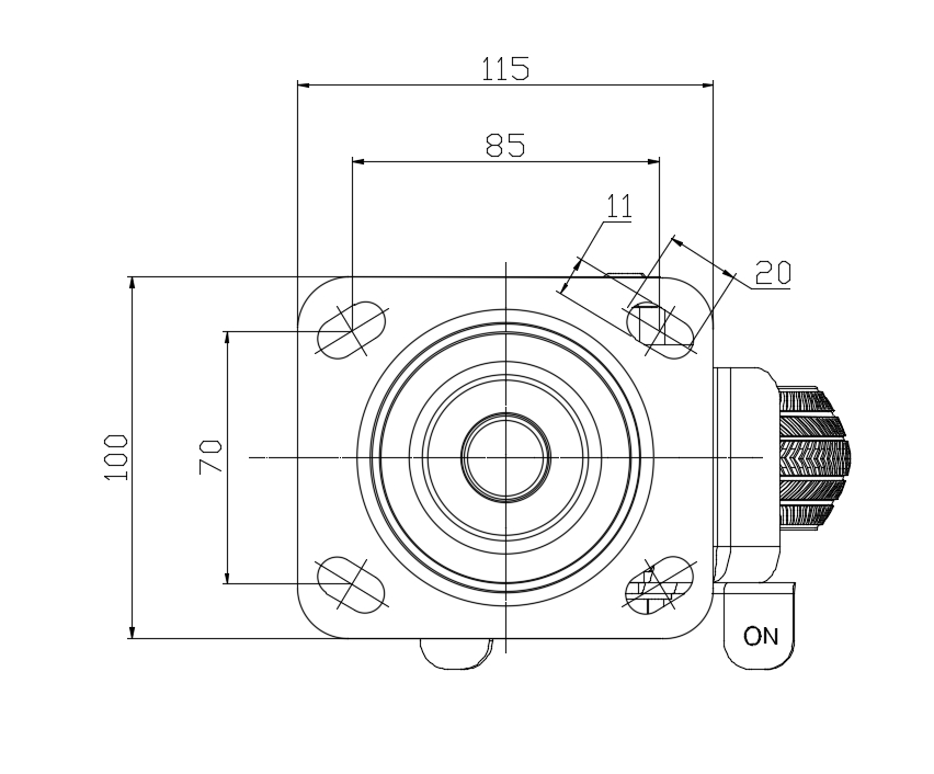 Side brake Caster with Locking system. Top Plate with Riveted Stamping D-shaped legs. Hole Zine-Plated, Top Plate (4.5T) Mounting Type system Cast Iron Wheel Center with High-Quality Resilient Rubber tread Iron black, Bearing—Ball Bearing. |