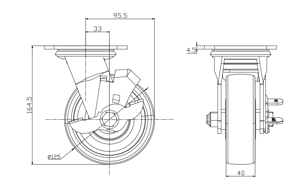 Wheel tread: Thermoplastic (PA6) Wheel Center: Thermoplastic (PA6) Drawings are for reference only and may differ from the product |