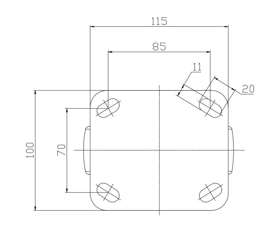 Rigid Caster, Welded Caster Fork 85 x 70mm (3-3/8" x 2-3/4") Bolt Hole Spacing