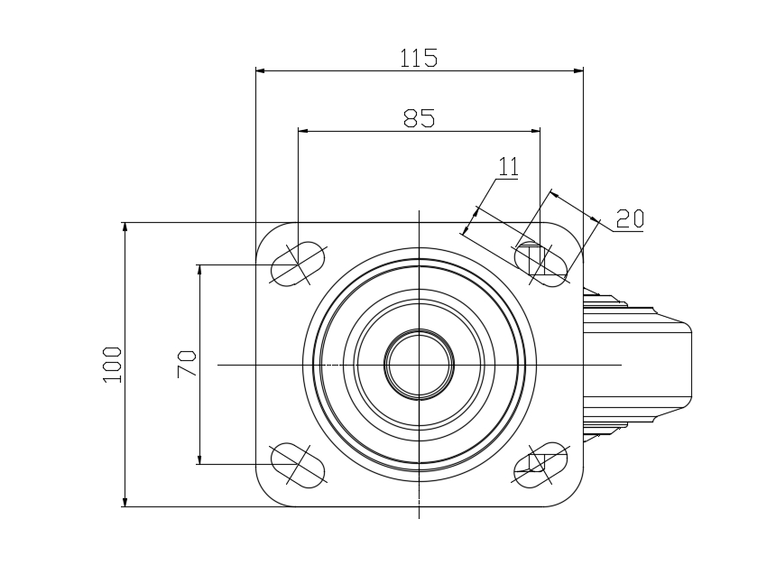 Swivel Caster, Top Plate with Riveted Stamping bracket and 85 x 70mm (3-3/8" x 2-3/4") Bolt Hole Spacing.