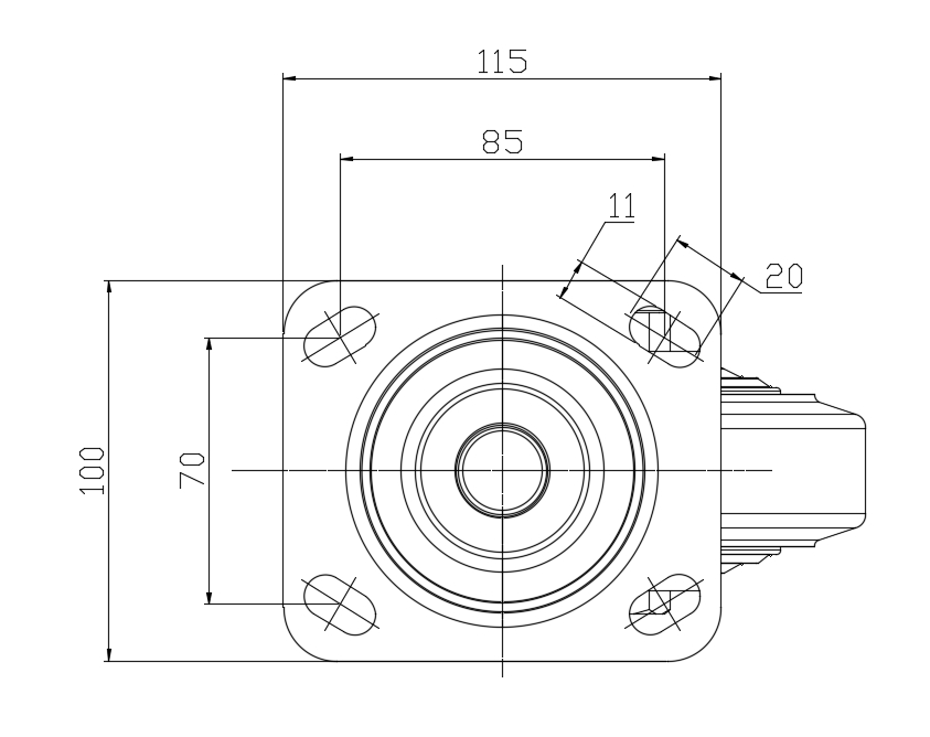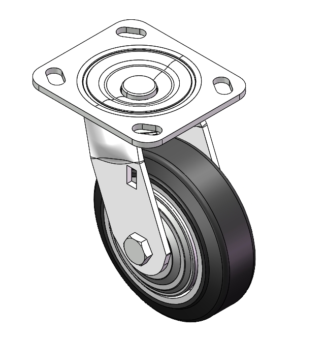 Swivel Caster, Top Plate Riveted and Stamping with 85 x 70mm (3-3/8" x 2-3/4") Bolt Hole Spacing Mounting Type. Zine-Plated, Top Plate (4.5T) Mounting Type mechanism. Cast Iron Wheel Center, High-Quality Resilient Rubber tread. Iron black, Bearing—Ball Bearing. |