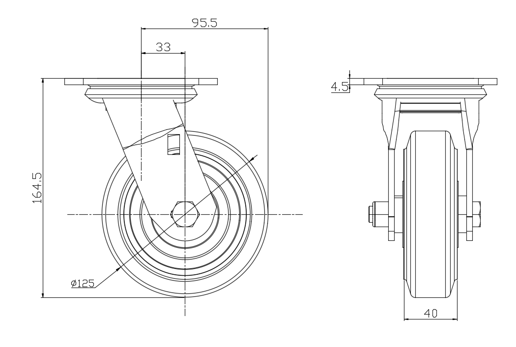 Wheel Tread: high-quality elastic rubber Wheel Center: cast iron core Drawings are for reference only and may differ from the product |