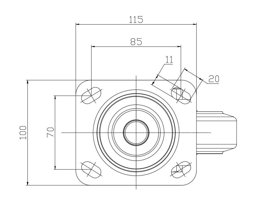 Swivel Caster, Top Plate Riveted and Stamping with 85 x 70mm (3-3/8" x 2-3/4") Bolt Hole Spacing Mounting Type. Zine-Plated, Top Plate (4.5T) Mounting Type mechanism. Cast Iron Wheel Center, High-Quality Resilient Rubber tread. Orange color, Bearing—Ball Bearing. |