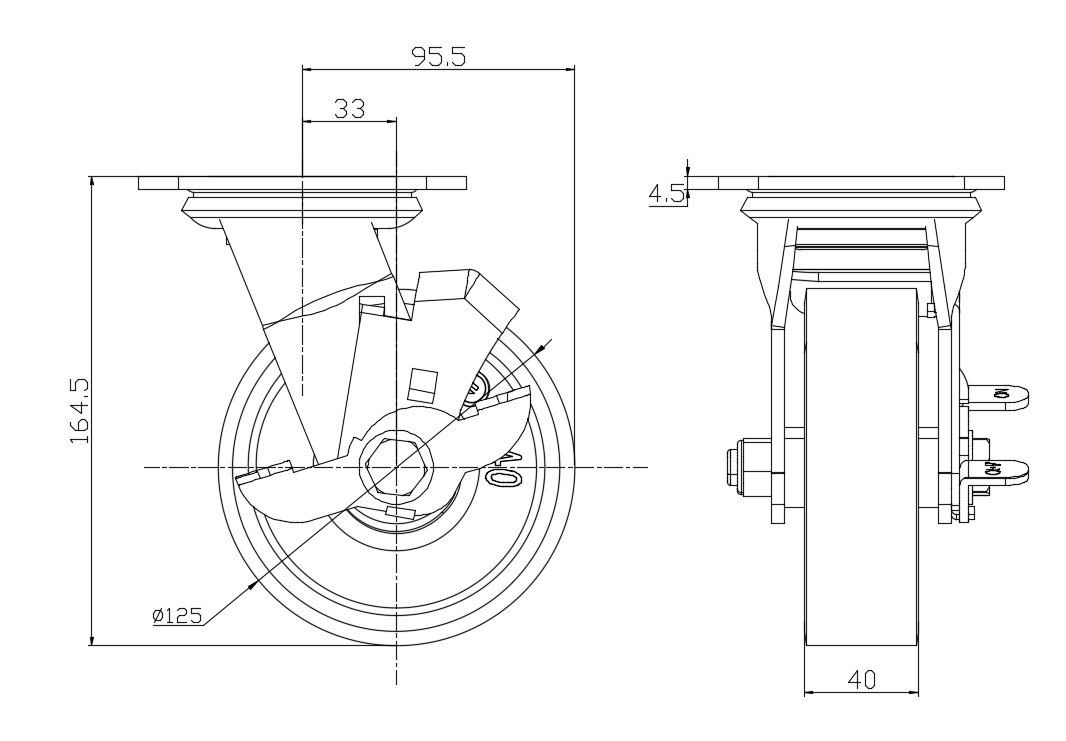 PU (red flat) Wheel Diameter × Wheel Width 125 × 40 mm |