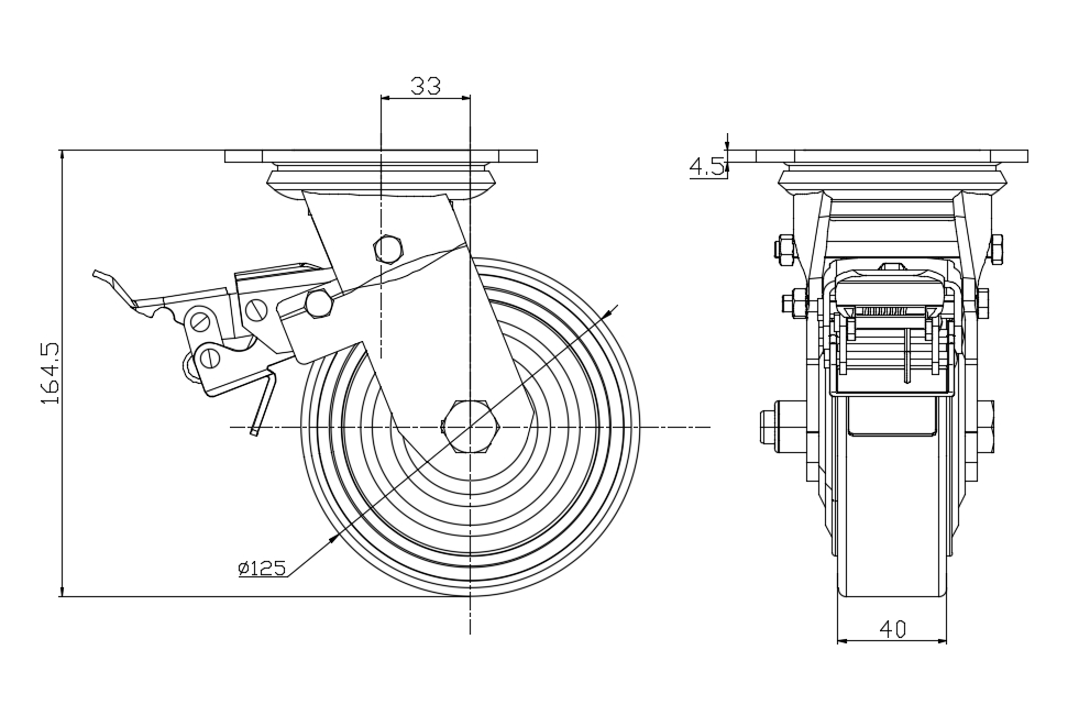PU (red flat) Wheel Diameter × Wheel Width 125 × 40 mm |
