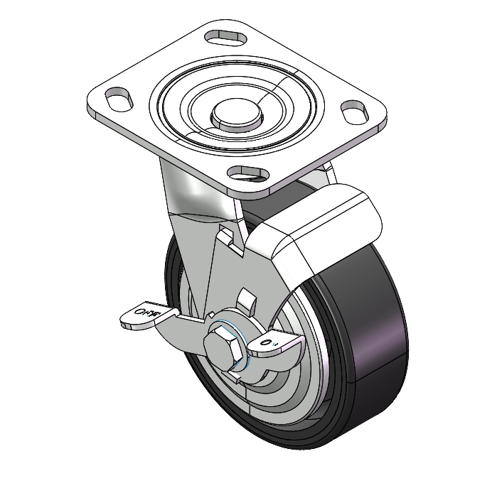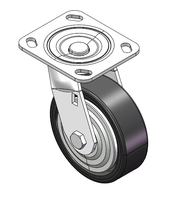 Swivel Caster, Top Plate Riveted and Stamping with 85 x 70mm (3-3/8" x 2-3/4") Bolt Hole Spacing bracket Zine-Plated, Top Plate (4.5T) Mounting Type system Cast Iron Wheel Center, High Quality Polyurethane tread Iron black, Bearing—Ball Bearing |