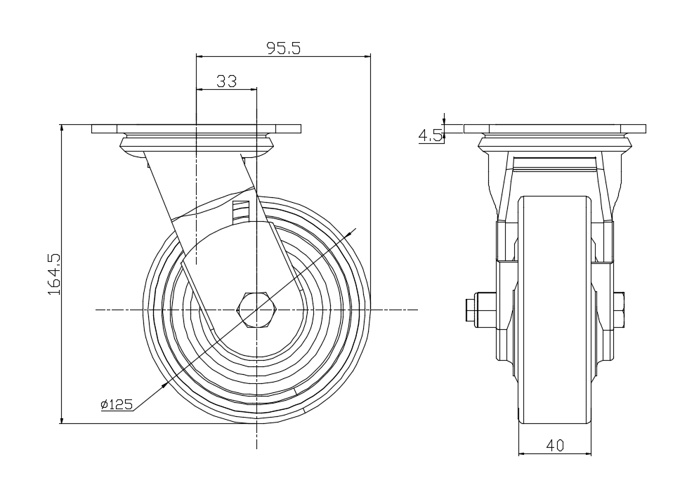 | Wheel tread: Made of high-quality polyurethane Wheel Center: cast iron core Drawings are for reference only and may differ from the product |