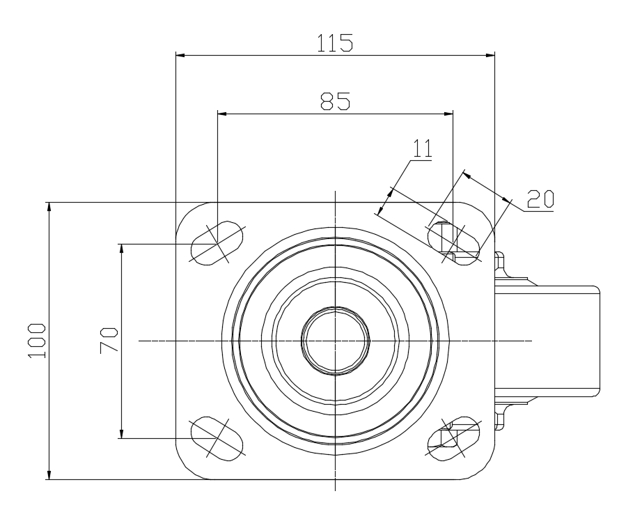 | Swivel Caster, Top Plate Riveted with Fork – D-shaped hole Zine-Plated, Top Plate (4.5T) Mounting Type system Cast Iron Wheel Center, High Quality Polyurethane tread Iron brown, Bearing – Ball Bearing, with special anti-wrap wheel cap |
