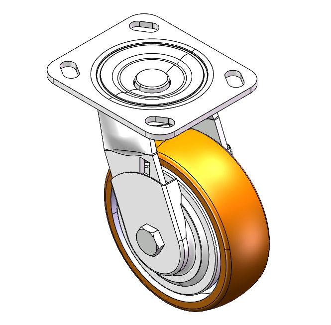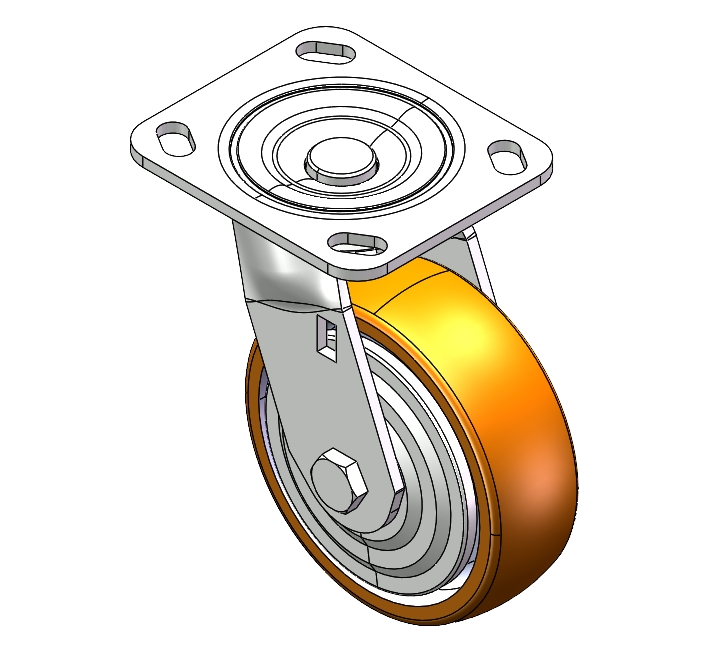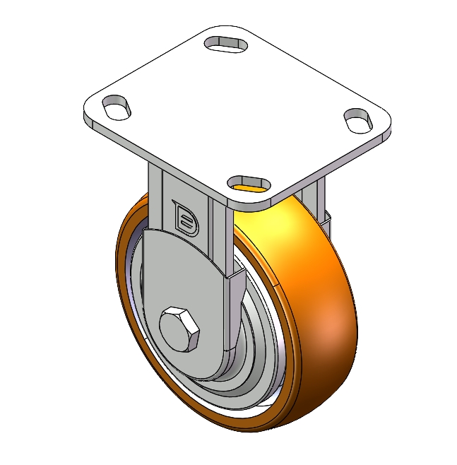 | Rigid Caster, Welded Caster Fork with 85 x 70mm (3-3/8" x 2-3/4") Bolt Hole Spacing cutout Zine-Plated, Top Plate (4.5T) Mounting Type system Cast Iron Wheel Center with High Quality Polyurethane tread Iron brown, Bearing with Ball Bearing. |