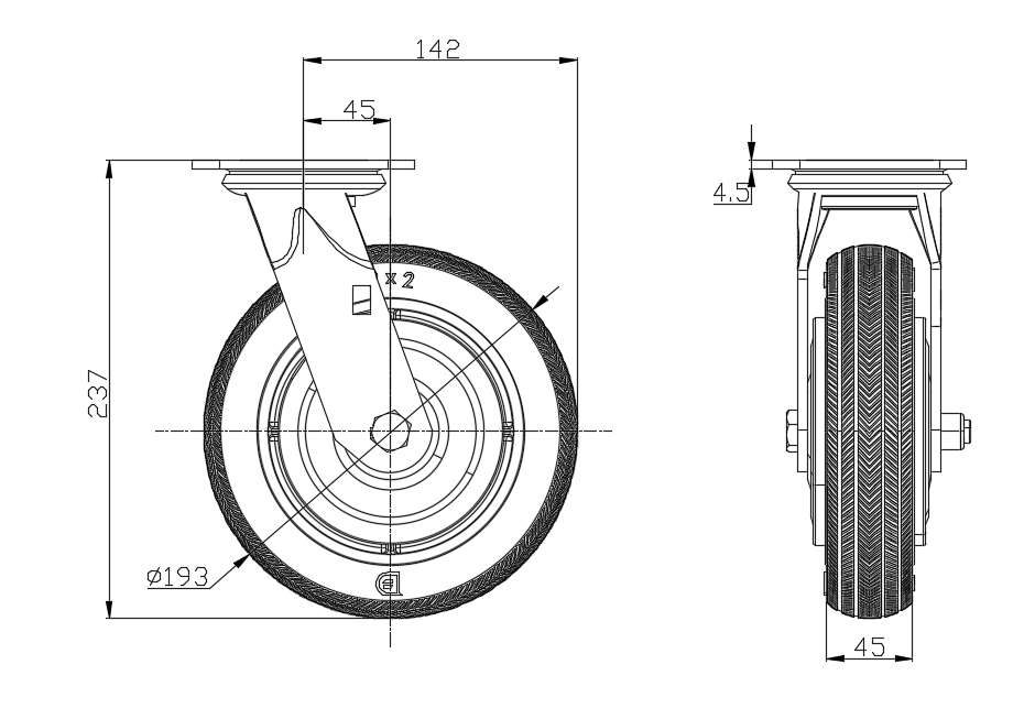 | SX Rubber Wheel Diameter × Wheel Width 193 x45mm |