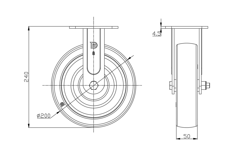 | Wheel tread: Thermoplastic (PA6) Wheel Center: Thermoplastic (PA6) Drawings are for reference only and may differ from the product |