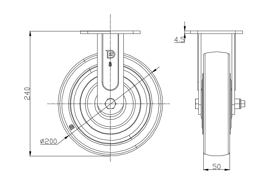 | Wheel tread: Thermoplastic (PA6) Wheel Center: Thermoplastic (PA6) Drawings are for reference only and may differ from the product |