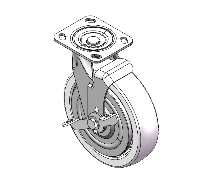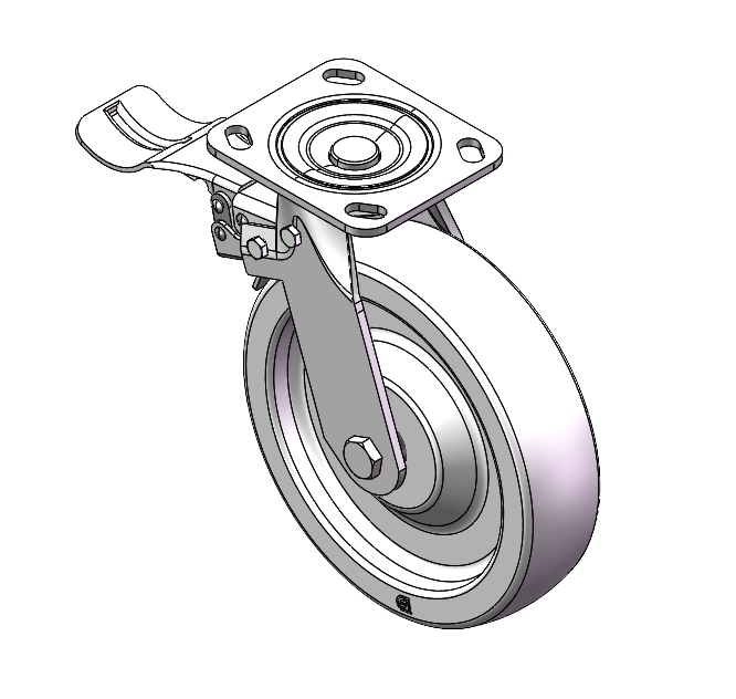 | Side (wheel) brake Caster with Locking system. Top Plate Riveted and Stamping - D-shaped. Hole Zine-Plated, Top Plate (4.5T) Mounting Type system Reinforced Polypropylene and tread Transparent, Bearing - Ball Bearing. |
