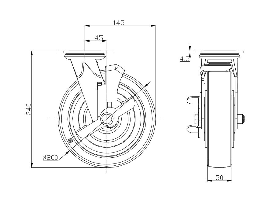 | Wheel tread: Thermoplastic (PA6) Wheel Center: Thermoplastic (PA6) Drawings are for reference only and may differ from the product |