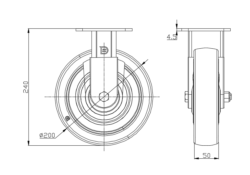 | Wheel tread: Thermoplastic (PA6) Wheel Center: Thermoplastic (PA6) Drawings are for reference only and may differ from the product |