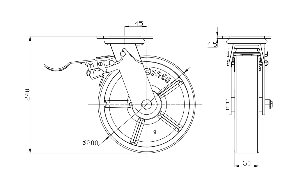 | Wheel tread: Made of high-quality polyurethane Wheel Center: cast iron core Drawings are for reference only and may differ from the product |   | |||||