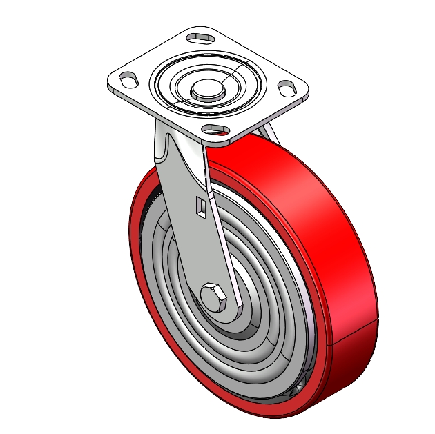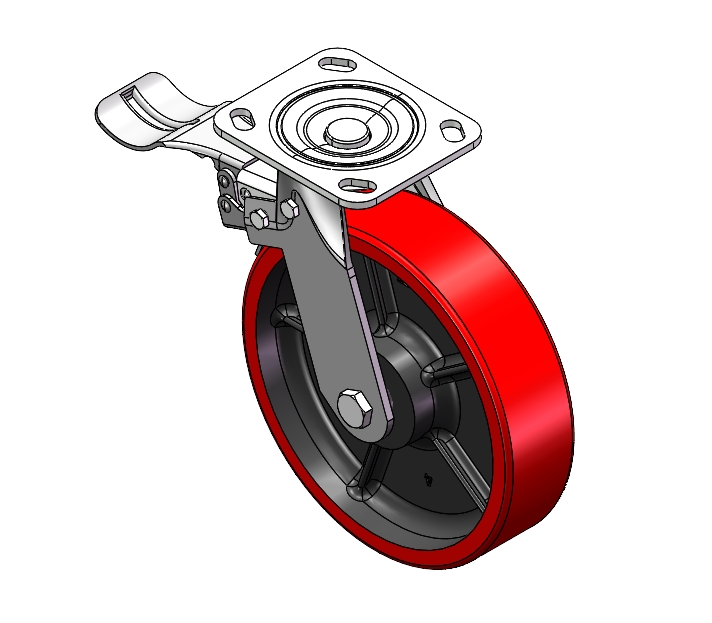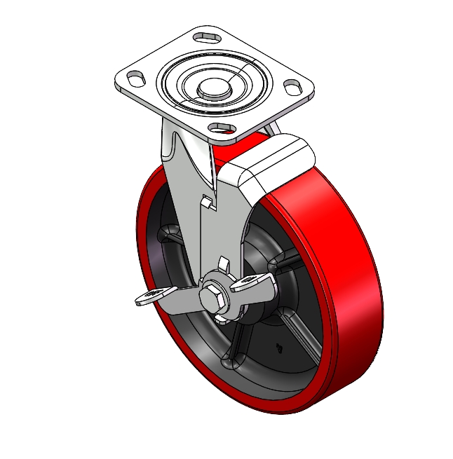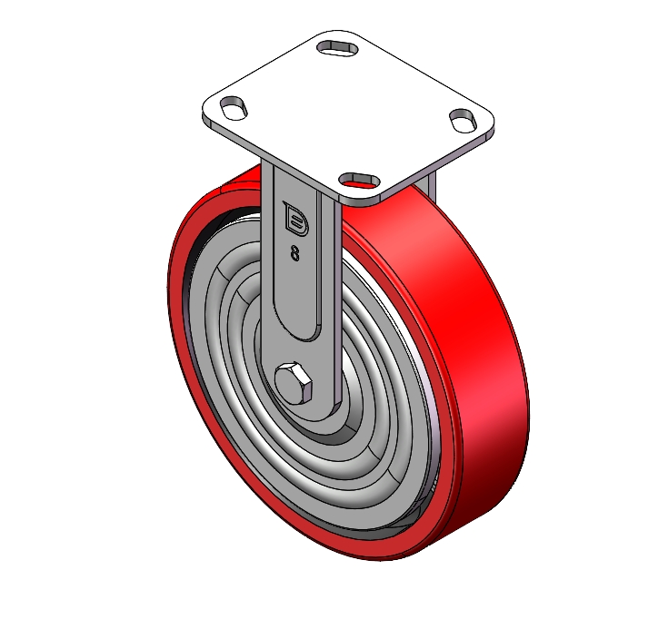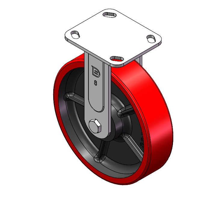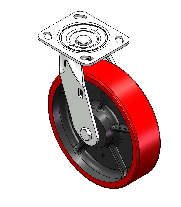 | Rigid Caster, Welded-on Fork with 85 x 70mm (3-3/8" x 2-3/4") Bolt Hole Spacing Mounting Type Zine-Plated, Top Plate (4.5T) Mounting Type system Cast Iron Wheel Center with High Quality Polyurethane tread Red Cast Iron finish, Ball Bearing. |