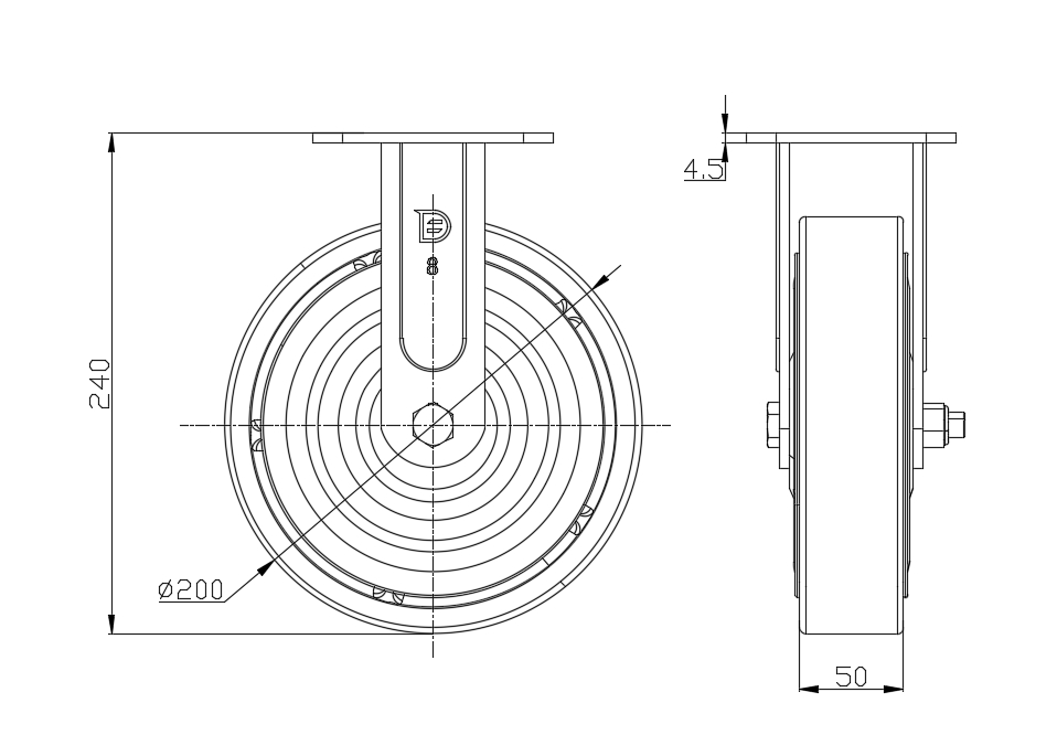 | Wheel tread: Made of high-quality polyurethane Wheel Center: cast iron core Drawings are for reference only and may differ from the product |