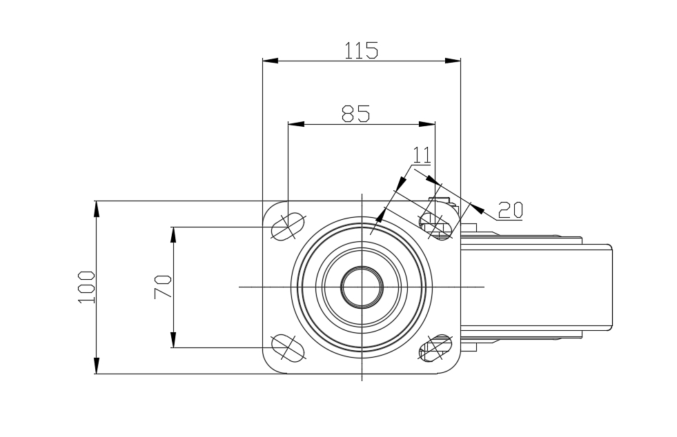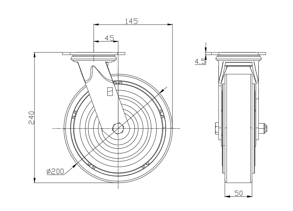 | Wheel tread: Made of high-quality polyurethane Wheel Center: cast iron core Drawings are for reference only and may differ from the product |