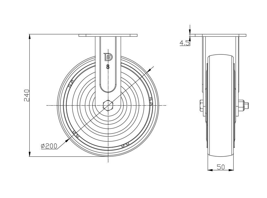 | Wheel tread: Made of high-quality polyurethane Wheel Center: cast iron core Drawings are for reference only and may differ from the product |