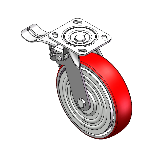 | Rigid Caster, Welded-on Fork with 85 x 70mm (3-3/8" x 2-3/4") Bolt Hole Spacing Mounting Type Zine-Plated, Top Plate (4.5T) Mounting Type system Cast Iron Wheel Center with High Quality Polyurethane tread Red Cast Iron finish, Ball Bearing. |