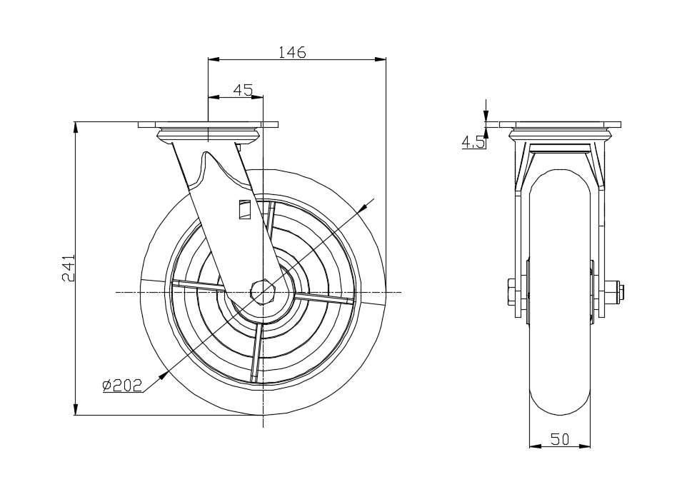 | Wheel tread: Thermoplastic rubber elastomer (TPR) Wheel Center: Made of high-quality impact-resistant polypropylene Drawings are for reference only and may differ from the product |