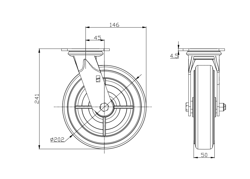 | Wheel tread: Thermoplastic rubber elastomer (TPR) Wheel Center: Made of high-quality impact-resistant polypropylene Drawings are for reference only and may differ from the product |