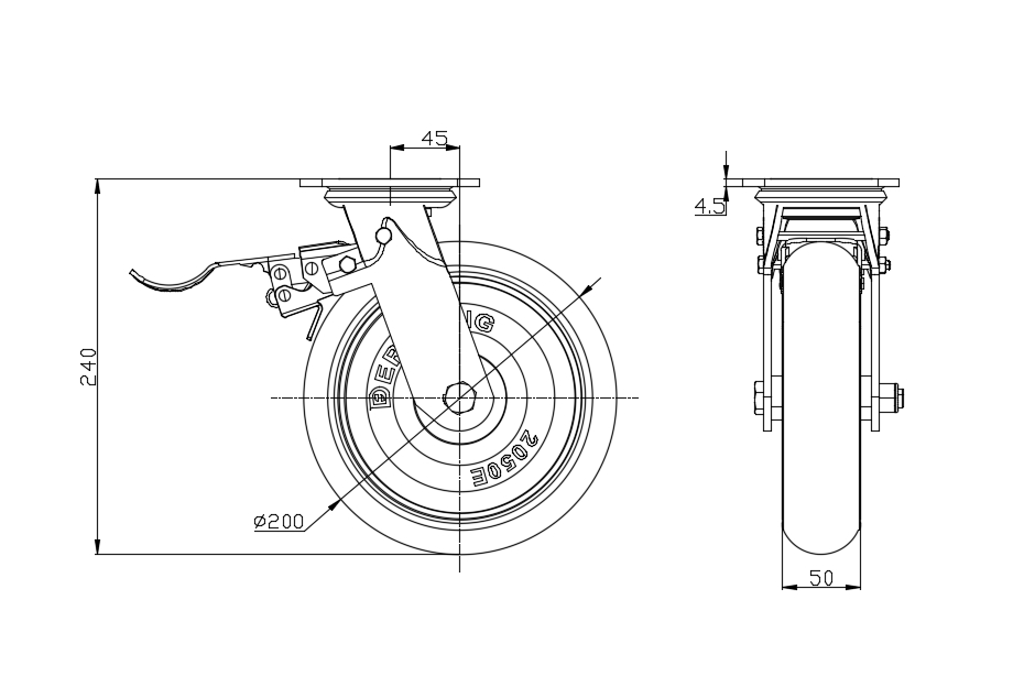 | EQPU (brown round) Wheel Diameter × Wheel Width 200 x 50mm |