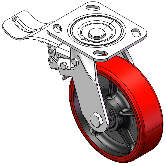 表面镀锌,底板式(4.5T)安装装置 铸铁制轮芯,高品质聚氨酯轮面 銑红色,轮子轴承—精密滚珠。 |