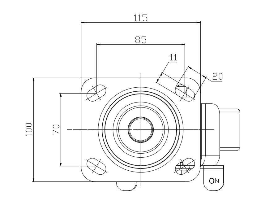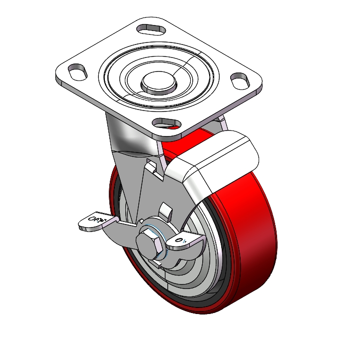 Hoàn thiện mạ kẽm, hệ thống lắp đế bánh xe (4.5T) Lõi gang với gai polyurethane chất lượng cao Hoàn thiện phay đỏ, ổ trục bánh xe - ổ bi chính xác.  |