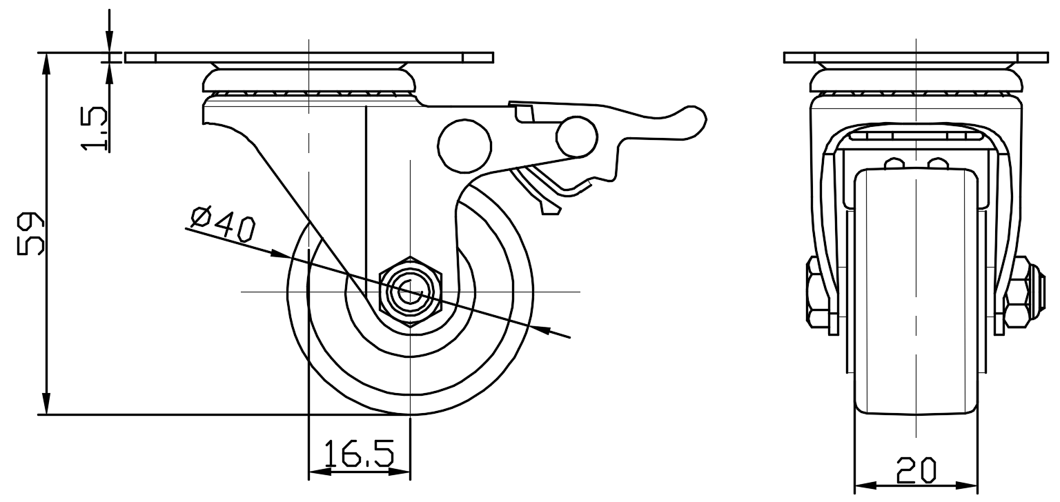 | Wheel tread: PP polypropylene Wheel Center: PP polypropylene Drawings are for reference only and may differ from the product |
