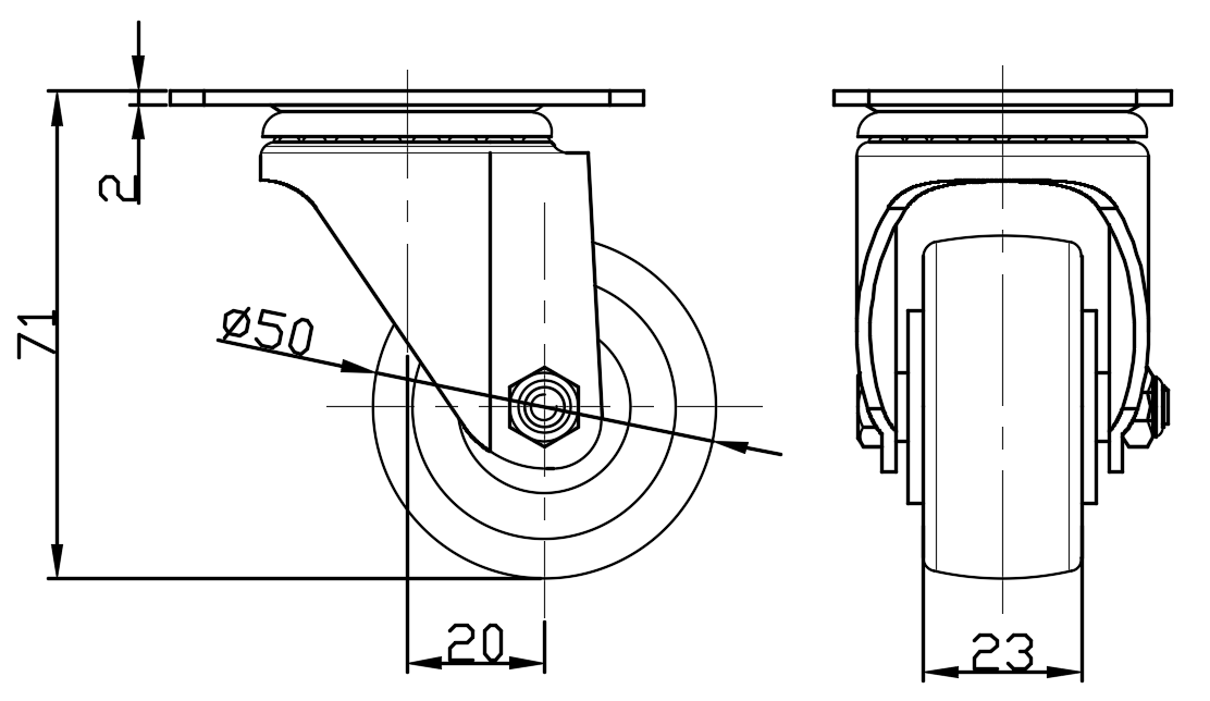 | Wheel tread: PP polypropylene Wheel Center: PP polypropylene Drawings are for reference only and may differ from the product |