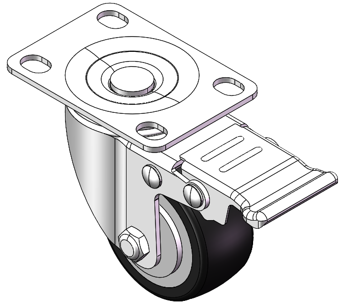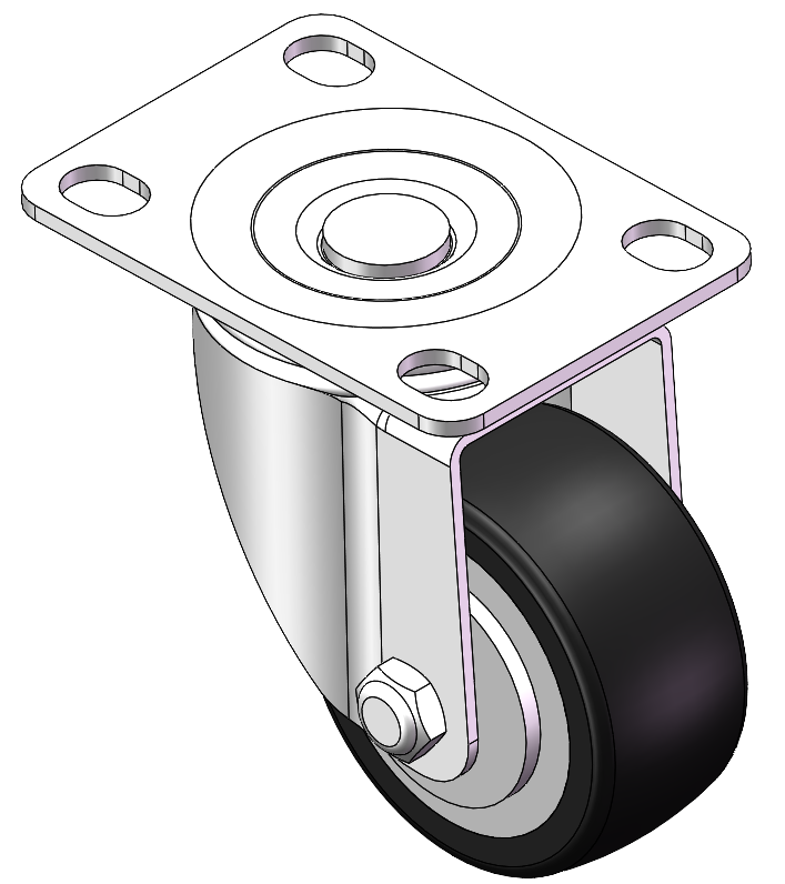| Swivel Caster with Stamping Fabricated Caster Fork and European standard holes. Surface electroplating, Mounting Type - Top Plate. Polypropylene Wheel Center and tread. White or black. Bearing: Ball Bearing. |