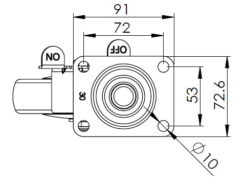 | 配有侧(轮)煞式,锁定系统的脚轮。底板铆合冲压脚架— 仪器孔 表面镀锌,底板式安装装置 耐冲击聚丙烯轮芯,热塑性弹性体(TPR)轮面 深灰色,轮子轴承—精密滚珠。 |
