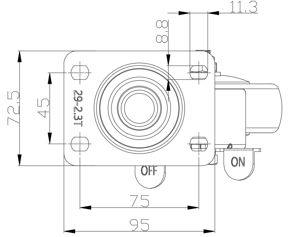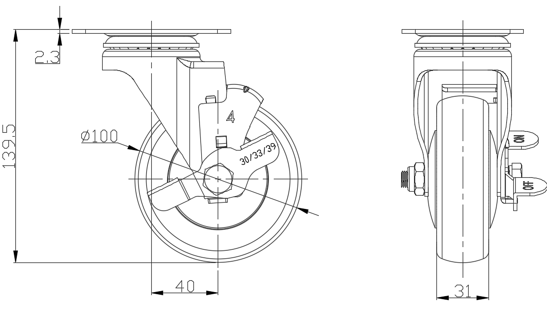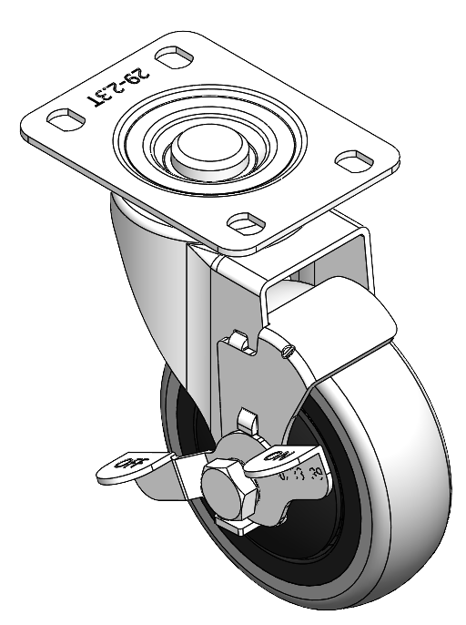 表面镀锌,底板式安装装置 耐冲击聚丙烯轮芯,热塑性弹性体(TPR)轮面 黑灰色,轮子轴承 — 精密滚珠。 |