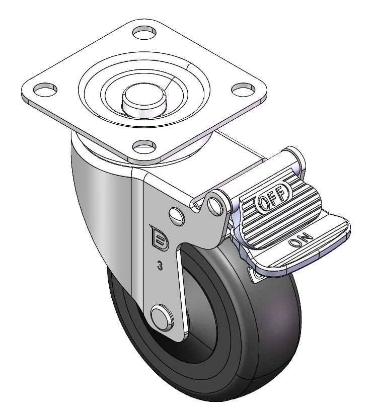 表面镀锌,底板式安装装置 耐冲击聚丙烯轮芯,热塑性弹性体(TPR)轮面 黑色,轮子轴承 — 精密滚珠。 |