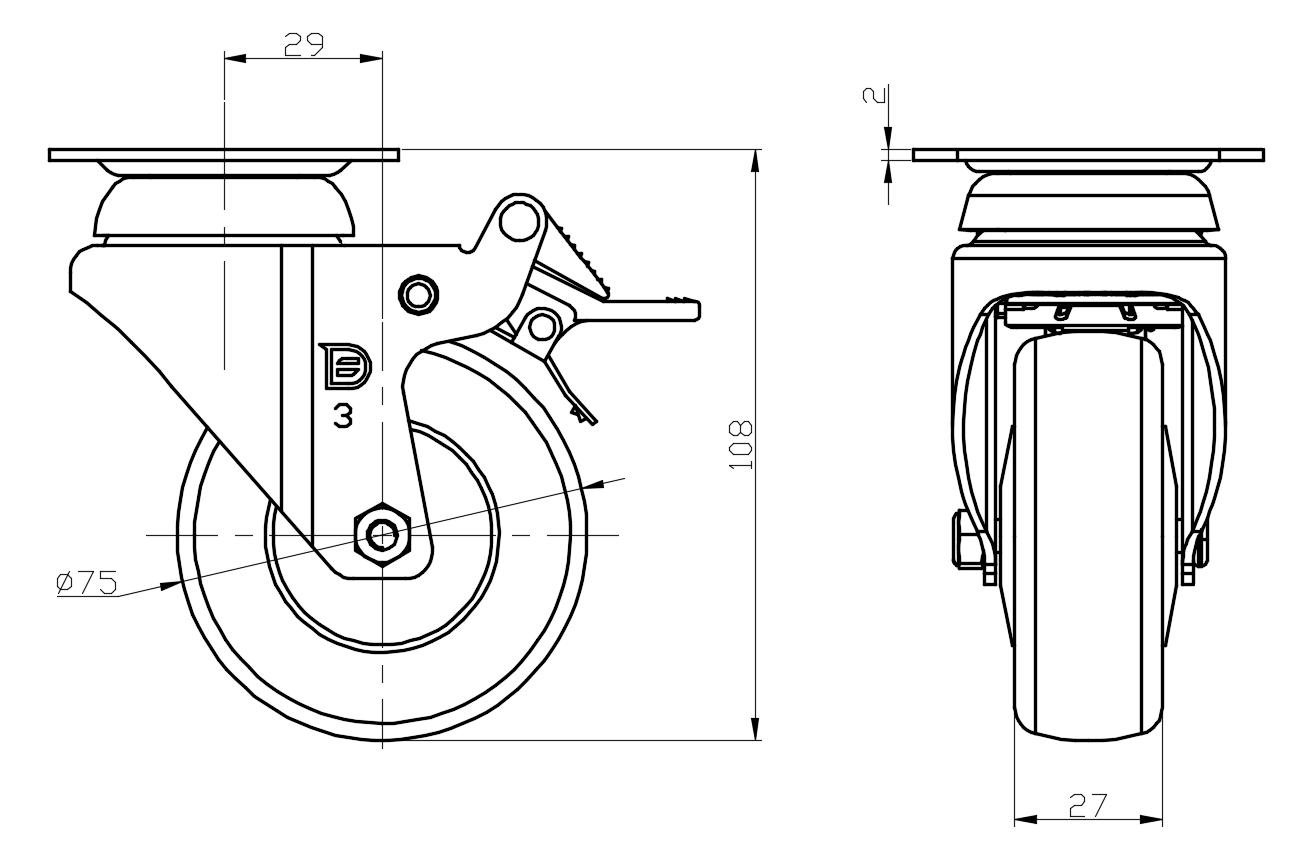 | PPR轮(黑色) 轮径 × 轮宽 75 x 27mm |