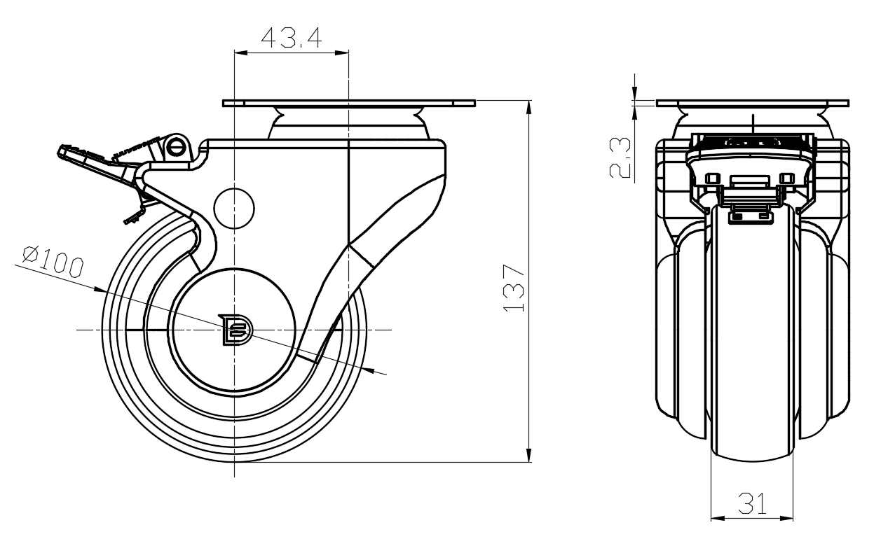 | 经典PPR轮(珠光深灰色) 轮径 × 轮宽 100 x 31mm |