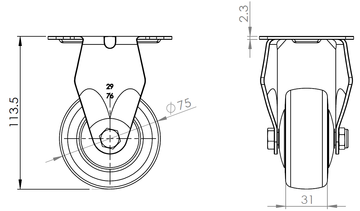 | PPR Wheel Diameter × Wheel Width 75 x 31mm |