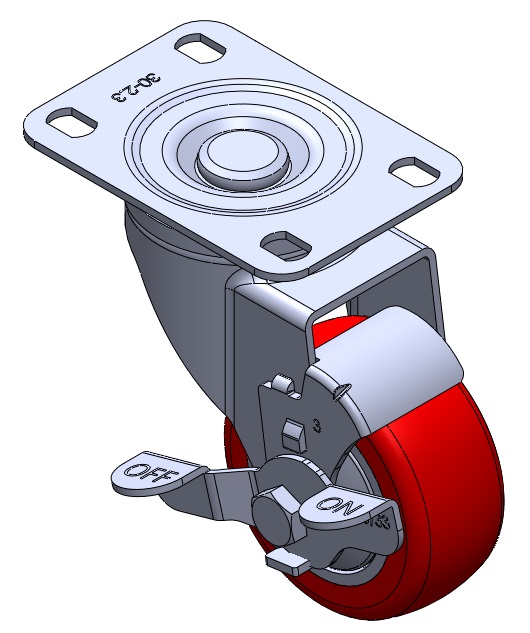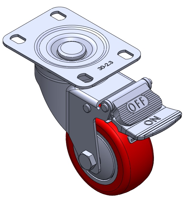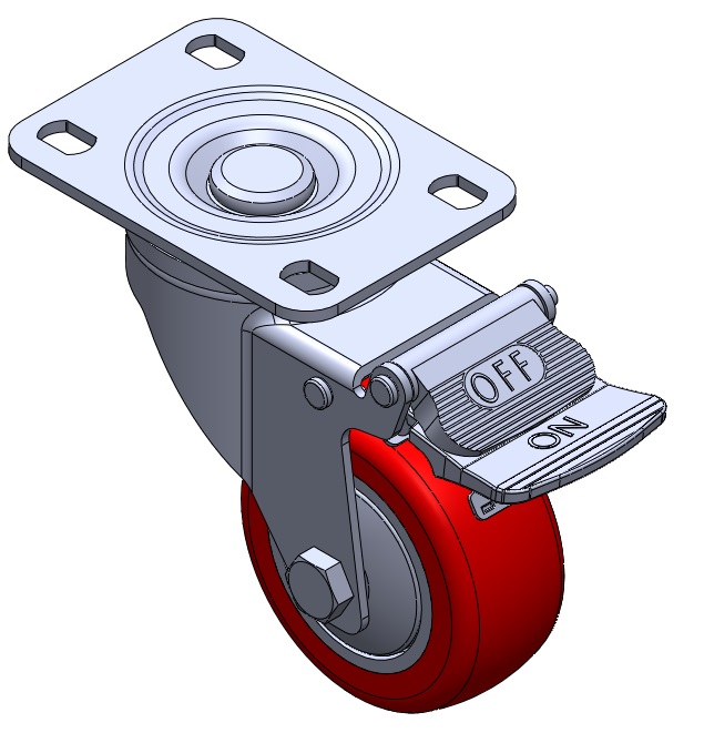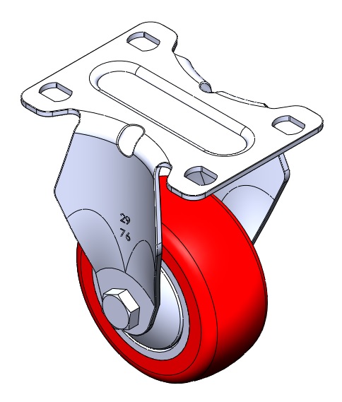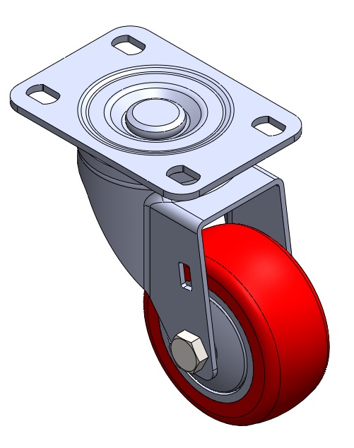 Zine-Plated, Mounting Type - Top Plate. High-Quality Impact-Resistant Polypropylene core with High-Quality Reinforced Polypropylene Rubber (TPR) Wheel Tread. Red color. Bearings: Ball Bearings. |