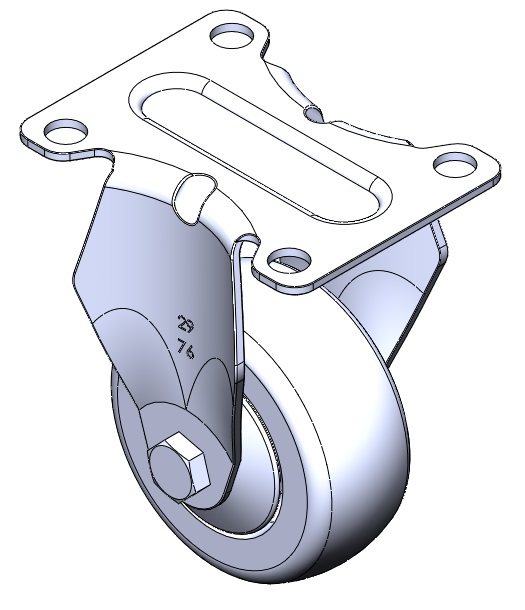 Rigid Caster with integrally molded Stamping footrest and 72 x 53.5 mm (2-7/8" x 2-1/8") Bolt Hole Spacing.