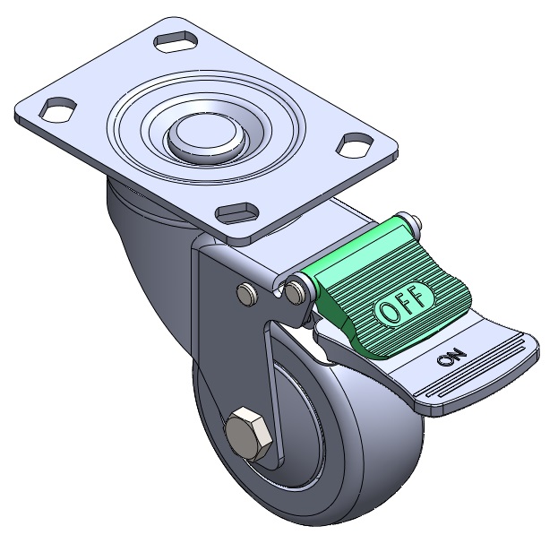 Zine-Plated, Mounting Type - Top Plate. High-Quality Impact-Resistant Polypropylene core with High-Quality Reinforced Polypropylene Rubber (TPR) Wheel Tread. Dark gray, Ball Bearings. |