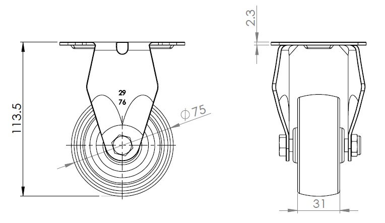 | Nylon Wheel Diameter × Wheel Width 75 x 31mm |