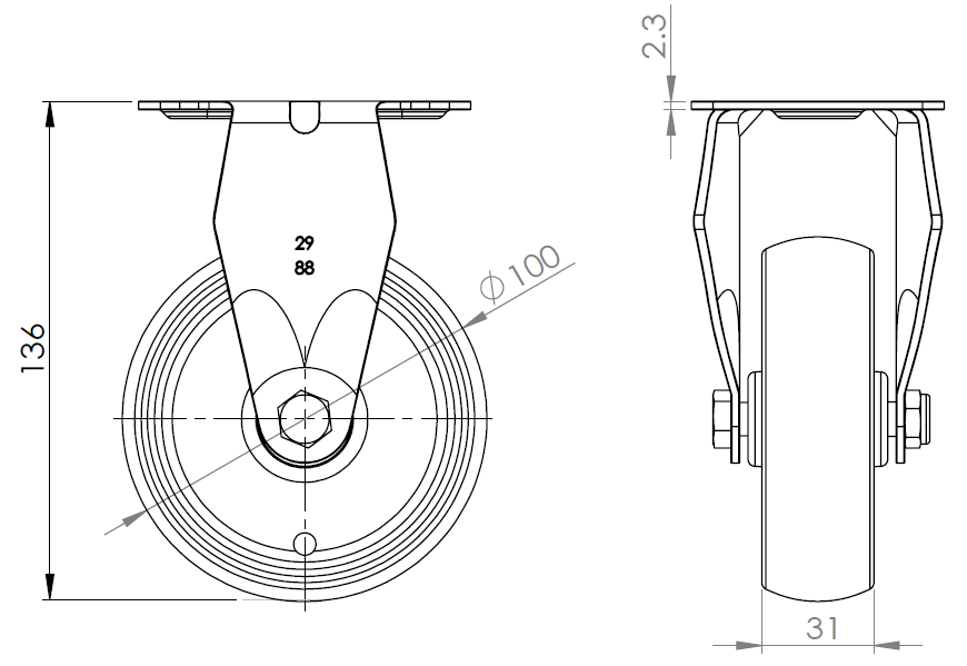 | Nylon Wheel Diameter × Wheel Width 100 x 31mm |