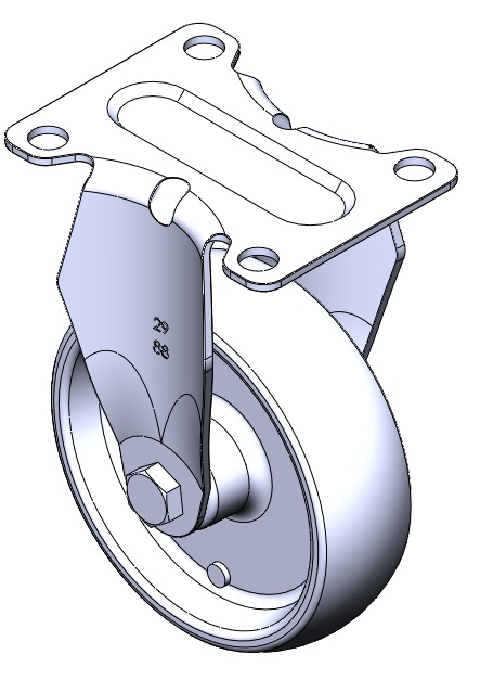 | Rigid Caster with integrally molded Stamping footrest and 72 x 53.5 mm (2-7/8" x 2-1/8") Bolt Hole Spacing. Zine-Plated, Mounting Type - Top Plate. Reinforced Polypropylene and Wheel Tread. Bearing - Plain Bearing. |