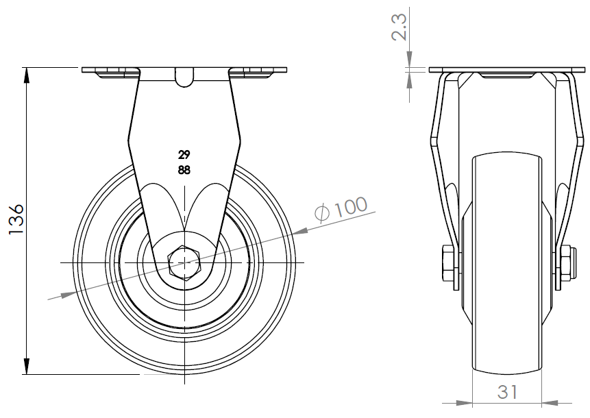 Metric Imperial Wheel Diameter 100mm Wheel Width 31mm |