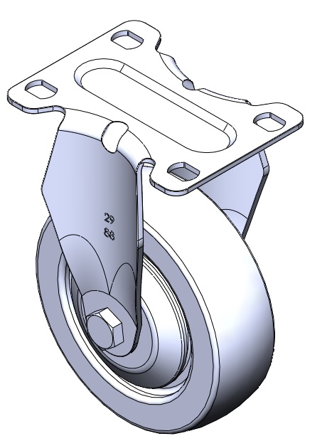 Rigid Caster with Stamping Fabricated Caster Fork and 75 x 45 mm (3" x 1-3/4") Bolt Hole Spacing.